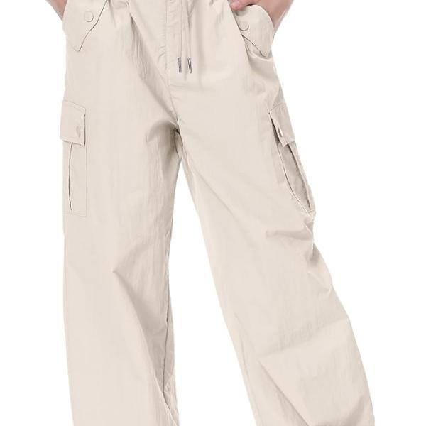 Rolanko Parachute Pants for Girls Y2K Cargo Trousers with Pockets Harajuku Jogger Pants Kids 4-14 Years