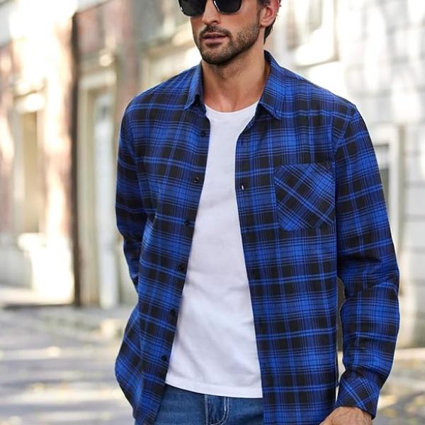 COOFANDY Mens Flannel Shirts Long Sleeve Plaid Button Down Shirt Casual Cotton Shirt with Pocket