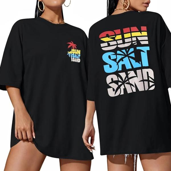 Features: Oversized graphic tees, featuring a crew neck, short sleeve, casual loose fit, and cute patterns on the front and back, provide a versatile and inclusive clothing option that complements a diverse range of personal styles