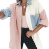Feature: Color block, Solid Color, Front Button Closures, Bust Pocket, Long Sleeves with Button Cuffs, wear as 3/4 sleeves or full sleeve, Turn-Down Collar, Boyfriend Style, Loose Fit Shirts