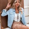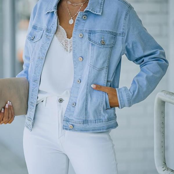 The women's denim jackets features collared neckline design, button down closure, two flap chest pockets and side pockets, single-breasted, long sleeve fashion jacket, distressed denim jacket.