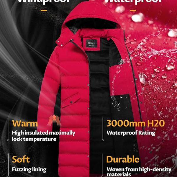 Durable & Windproof Design: Men's winter coat use high-density tear-resistant fabrics combined with double-layer reinforced quilting technology to improve wear resistance and tear resistance, without fear of harsh outdoor environments.With high-quality SBS zippers and windproof snap-on plackets, the double closure system ensures that the cold cannot invade.The long section and adjustable hem snap-in design can ensure the temperature of the legs and move freely at the same time