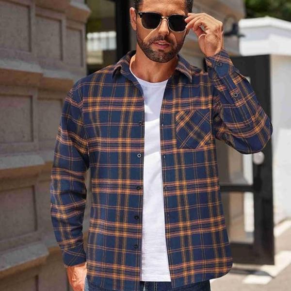 【Casual Wear】Men's long sleeve plaid shirt can be worn as a simple shirt or a thin shacket jacket in the fall. In colder weather, layer it with jackets, coats, or sweaters for stylish and comfortable casaul outfits.