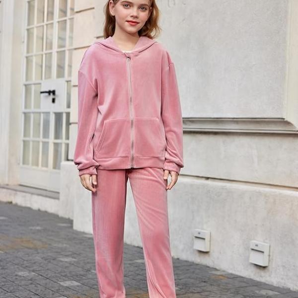 WARM FABRIC:Girls sweatsuits with a buttery-soft texture similar to velvet, lend a luxurious sheen to fashion look. Stretchy and drape, velour outside only, promise cozy wear all day